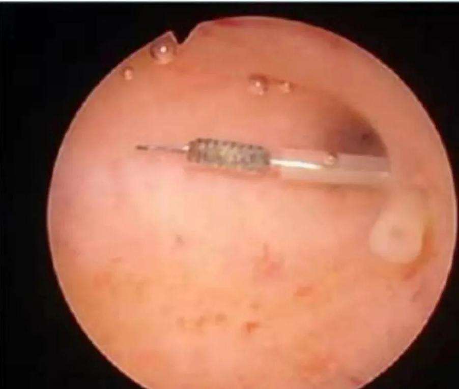 在手术中,清晰见节育环嵌入子宫前壁肌层,住院部陈利主任凭借丰富的经验,在宫腔镜下,精准快速把节育环从肌层拉出,患者术中未见出血,并且隐痛也随之消失,手术也非常成功。